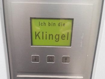 An der Eingangstür einer meiner behördlichen Auftraggeber ist dieses kleine Display angebracht. Da steht nicht: KLINGEL. Oder: HIER DRÜCKEN! Da steht: „Ich bin die Klingel“. Wer zwischen den Zeilen lesen kann, hört sowas wie: „Wir freuen uns auf Dich!“ oder „Komm rein, keine Angst!“ Hat sich irgendwer ausgedacht. Warum? Weil sich manche Menschen nicht so einfach über die Schwelle trauen. Adressatengerechte Kommunikation öffnet Türen. Und dieser Kurs auch.